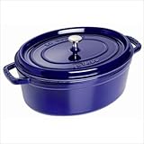 1103391 The French oven is a timeless standby for stews, roasts, soups, casseroles and other one-pot classics. Staub has perfected this tradition in our signature ''La cocotte'' (co-cot) French Oven, the choice of some of the world's best chefs. The traditional round design has self-basting spikes for continuous, natural basting. When your meal is ready, La Cocotte moves beautifully from the stove to your table. Features: -Oval cocotte. -Dark blue finish. -Nickel knob for oven use. -Closed circuit and spikes cooking allows self basting. -Enameled black matte interior provides genuine flavor. -Material: Cast iron. -Smooth enamel bottom. -Made in France. -Constant and optimum performance. -Cast iron retains and evenly diffuses heat. -Induction hob compatible. -Easy to clean. -Dishwasher safe but it is advised not doing this too often. -Resists up to 500 F. -Compatible with all heat sources. Specifications: -Capacity: 7 qt.. -Staub provides lifetime guarantee. -Overall dimensions: 6.4'' H x 15'' W x 11.8'' D.